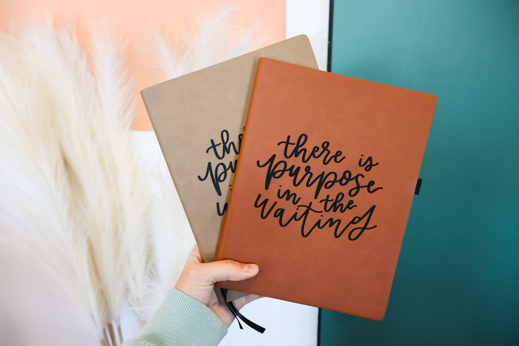 'There is purpose in the waiting' leather journal notebook
