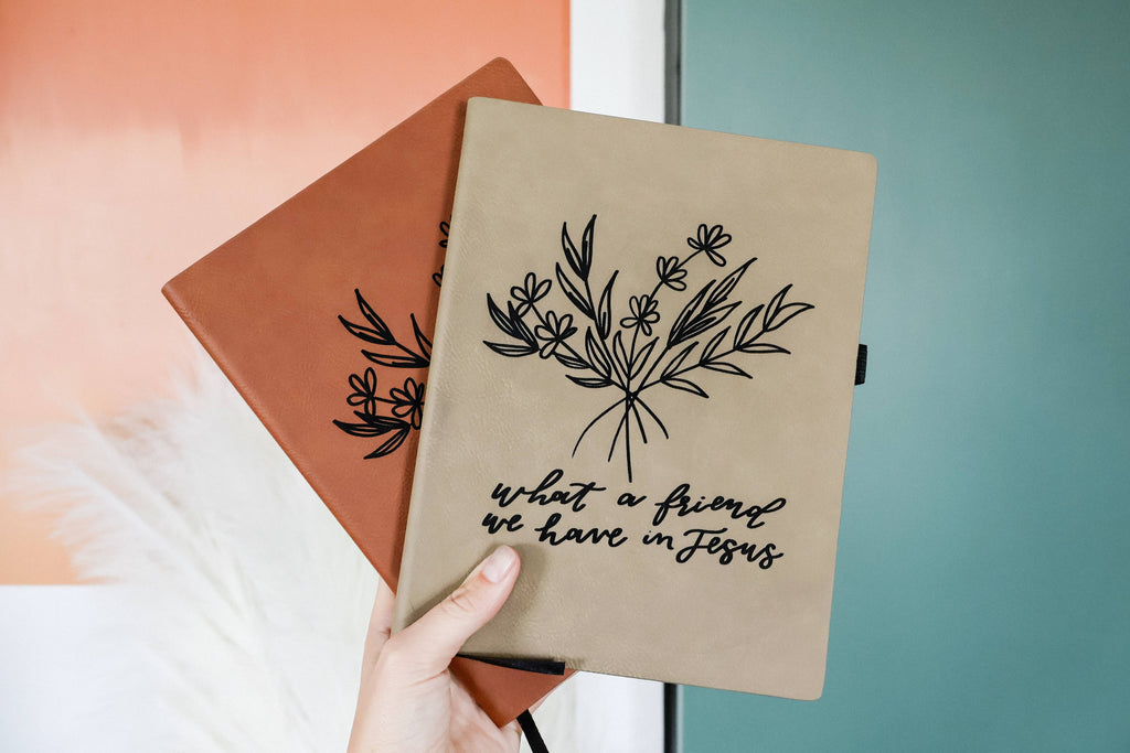 'What a friend we have in Jesus' floral leather journal notebook