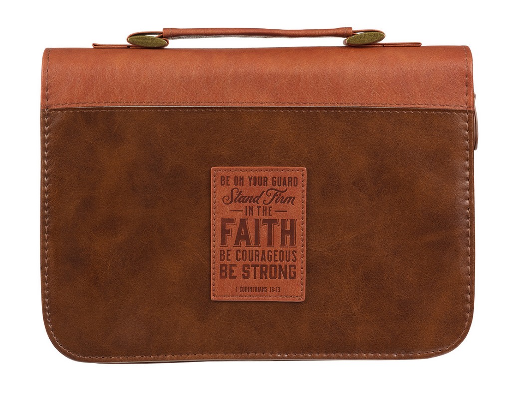 Stand Firm Two-tone Brown Faux Leather Classic Bible Cover - 1 Corinthians 16:13 (LARGE)