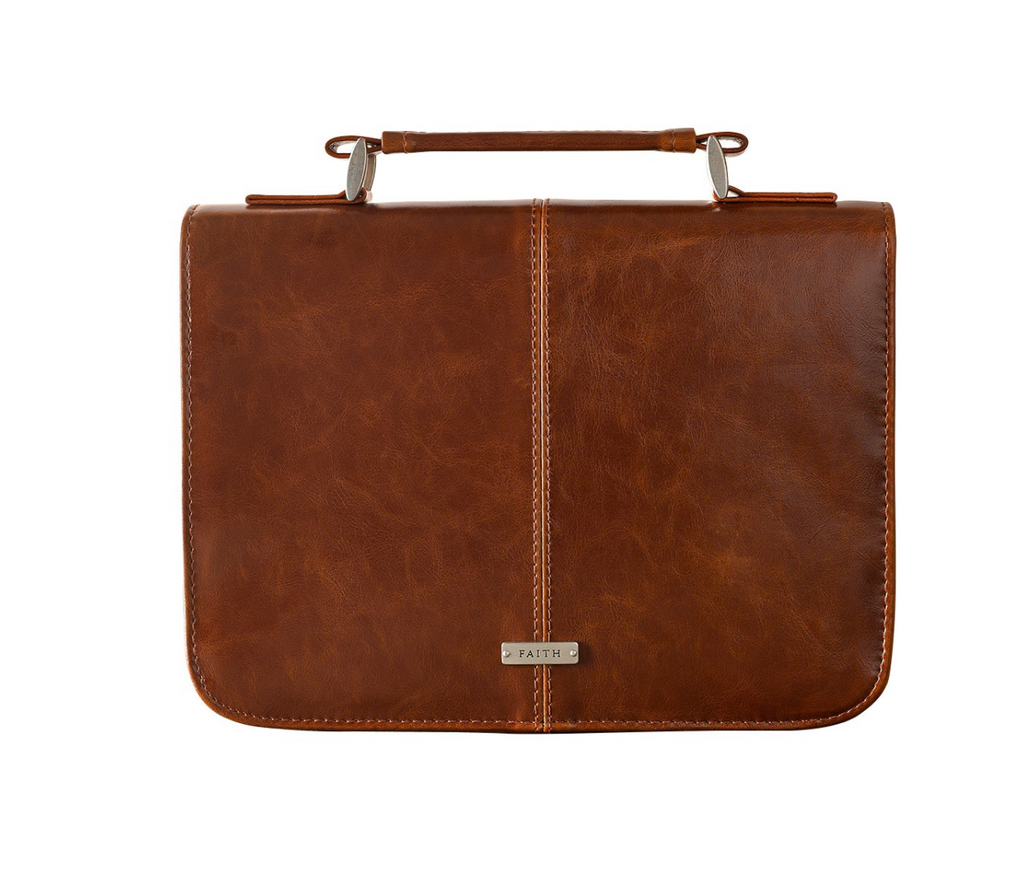Faith Brown Faux Leather Bible Cover with Badge (LARGE)