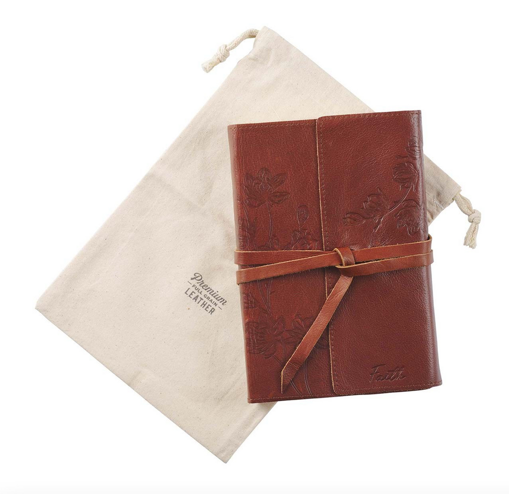 Faith Brown Full Grain Leather Journal with Wrap Closure