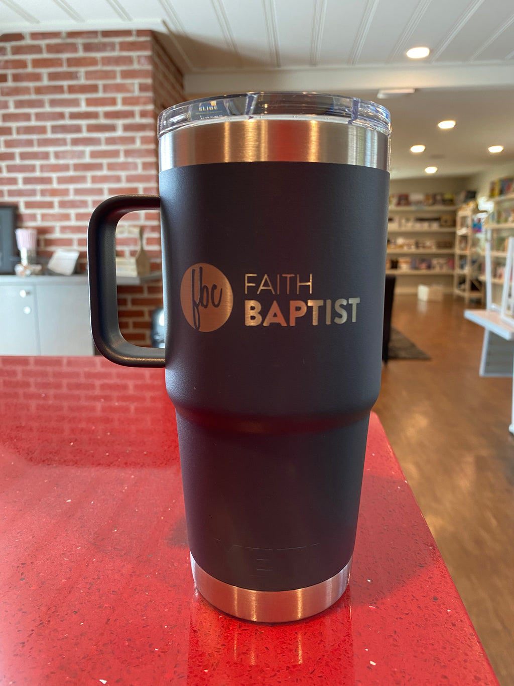 Faith Baptist branded - YETI Rambler 20 oz Travel Mug, Stainless Steel, Vacuum Insulated with Stronghold Lid, Navy