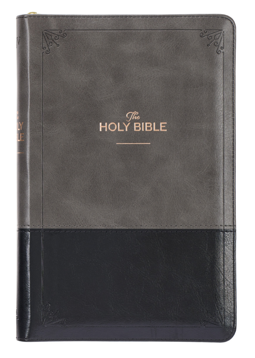 Gray and Black Faux Leather King James Version Deluxe Gift Bible with Thumb Index and Zippered Closure