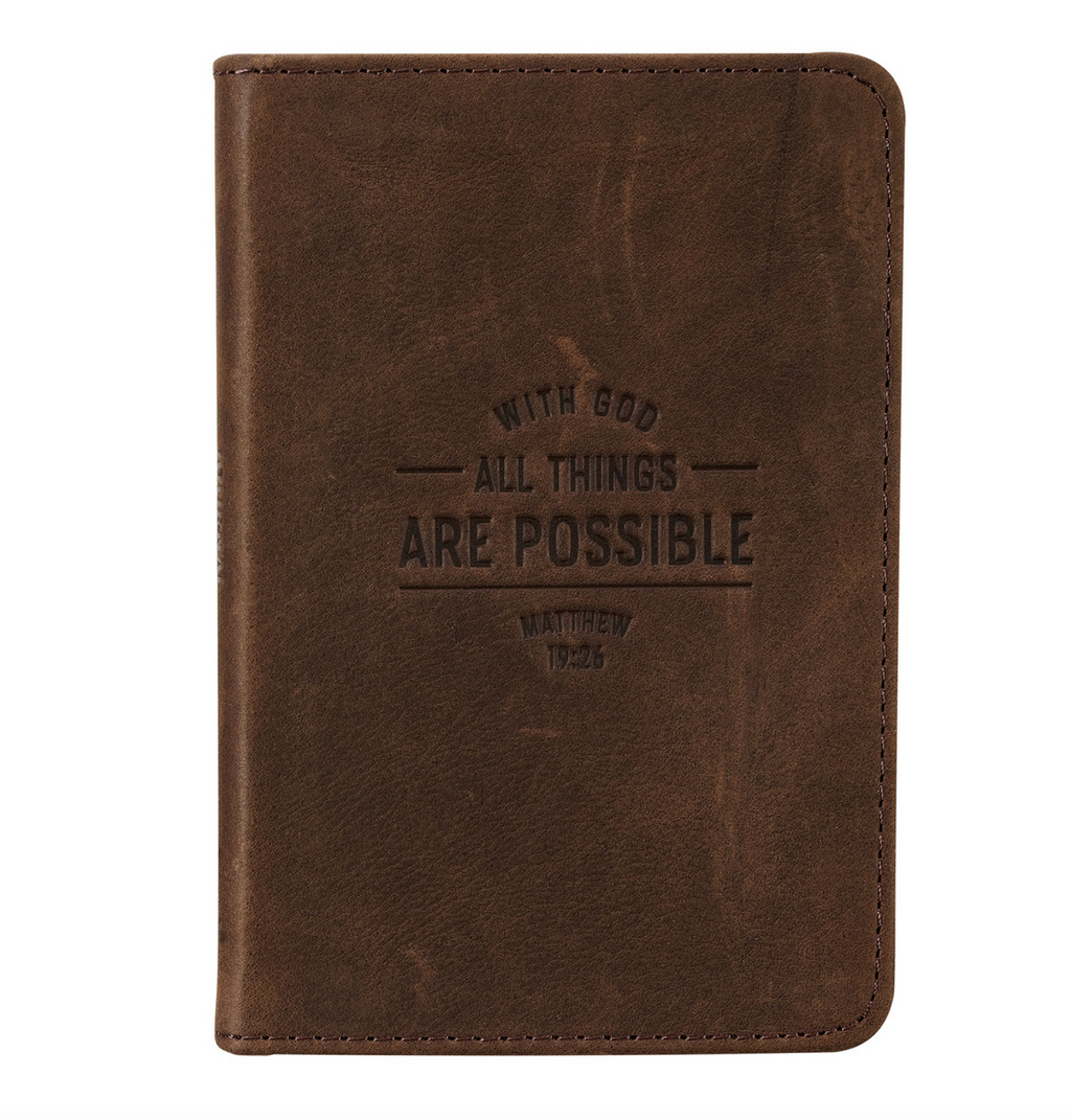 All Things Are Possible Pocket-sized Full Grain Leather Journal - Matthew 19:26