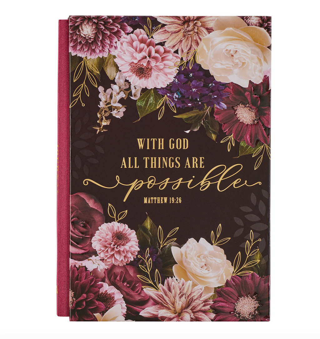 All Things Are Possible Burgundy Floral Quarter-bound Journal